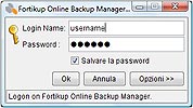 Di seguito alcuni screenshots relativi al software client FortiKup Online Backup Manager